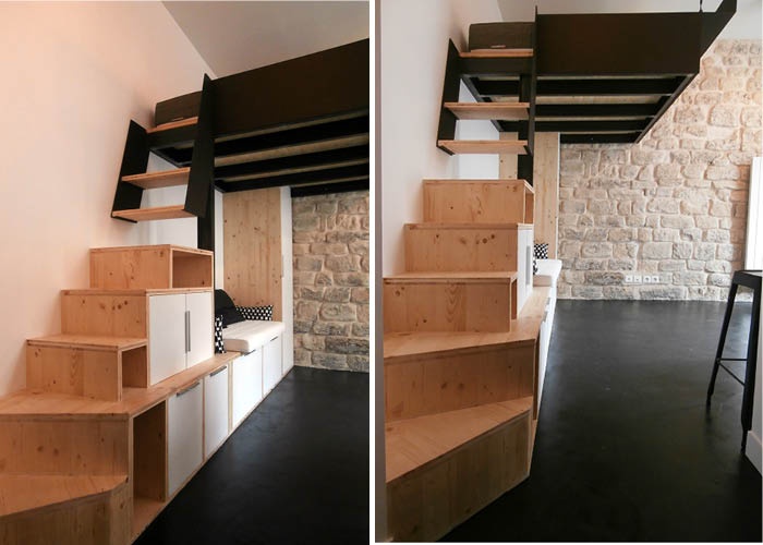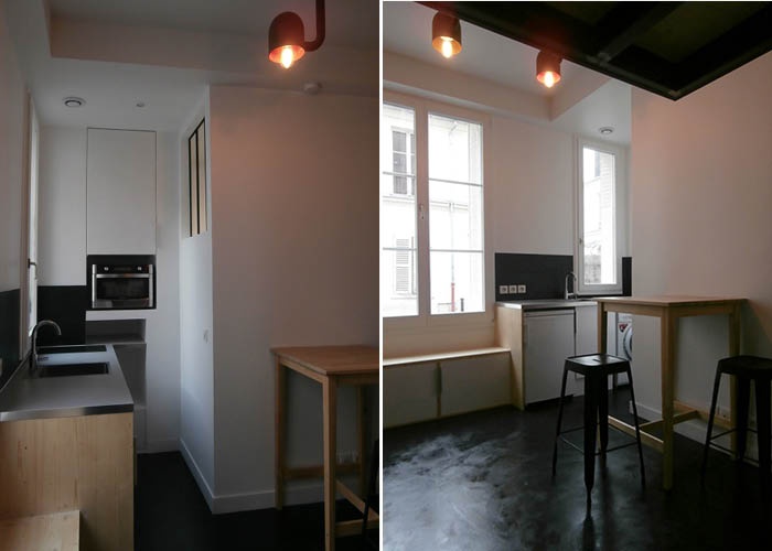 L’opération vise le réaménagement d’un studio de 18m²; à rez-de-chaussée d’un immeuble en brique du quartier de la Goutte d’Or.